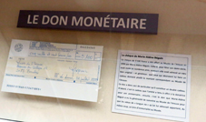 Le «don monétaire». Il permet de faire vivre le musée qui a un petit budget. C’est une aide au financement du musée. Par exemple: un chèque… ou un versement dans la crousille. |