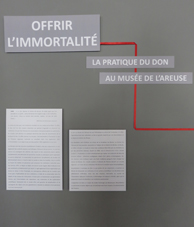 Le musée est un centralisateur de dons. Quelle est la démarche de celui qui fait un don? La volonté du donateur est différente de celle du conservateur qui le reçoit. Les musées ne sont pas que passifs à recevoir des dons, mais aussi actifs, car le musée promet à la personne de conserver son don et de le transmettre, de passer ce savoir à d’autres personnes, soit «offrir l’immortalité». On sauvegarde aussi le nom de la personne. C’est donc aussi une manière de laisser son nom au-delà de soi. |