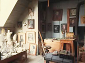 Depuis 1921, son atelier se trouvait à la rue de la Cure à Corcelles. La découverte de cet atelier est due à un chercheur de Montpellier. Les peintures, peintes sur toile, étaient sorties du châssis. On voit encore les trous des punaises. Mais, pourquoi les portraits n’étaient pas sur châssis et étaient mis dans un coin? C’est parce qu'il s'agissait des études pour des œuvres plus monumentales. En les remettant sur châssis, nous allons en quelque sorte à l’encontre de la volonté de l’artiste. |