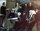 Avec ses pinceaux, Jeanne Lombard «raconte» un drame rarement mis en images: l’épopée tragique des Protestants de France. De 1907 à 1938, elle réalise sept grandes compositions, sur commande du Musée du Désert à Mialet, relatives à l'histoire des Huguenots réfugiés dans les Cévennes au XVIIIe siècle.