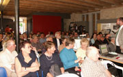 Yves Delamadeleine, scientifique et mycologue reconnu, est venu nous parler de sa spécialité: les champignons. Et le public l'aurait écouté encore davantage, si la vue des bons petits plats préparés à son intention n'avait titillé sa gourmandise! Voici en résumé quelques bribes de passion transmises par notre orateur: Historiquement, nous connaissons trois règnes: les animaux, les végétaux et les minéraux. Est-ce que les champignons sont des animaux? Des végétaux? Des minéraux? Non, ni l'un, ni l'autre: ce sont des champignons! Donc, ils constituent un règne à part. Ils n'ont ni feuille, ni tige, ni racine. Les êtres humains et les champignons font donc partie de deux règnes différents, mais il y a des interactions … souvent au détriment des champignons … (ah! les merveilleux risottos aux bolets, les croûtes aux morilles...). |