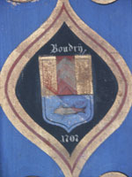 Détail des armoiries de Boudry (1707: date à laquelle la famille Suchard est reçue bourgeoise de Boudry).