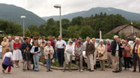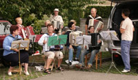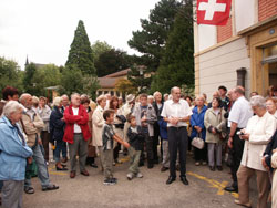 Rendez-vous était donné au Parc Zimmermann, sur les hauts de Boudry. Accueil en musique grâce à un groupe d'accordéonistes. La foule devient de plus en plus dense.