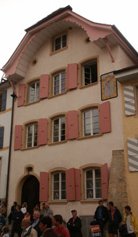 Déplacement encore à la rue Oscar Huguenin 14, devant la maison où notre grand homme a habité. Grâce à la gentillesse de M. Vuille, le public a même pu admirer le plafond peint par Oscar Huguenin.