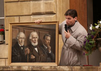 Puis Eddy Jaquet a présenté un tableau d'Oscar Huguenin, en donnant une interprétation possible. Oscar Huguenin s'est placé tout à droite sur le tableau.