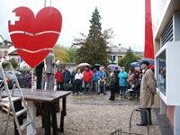 Pierre-Henri Béguin, président de la Société du Musée de l'Areuse, salue le nombreux et fidèle public. Il annonce la visite de personnalités importantes ... mais doit d'ores et déjà excuser Martin Heller, retenu sur son île. Une autre personnalité est attendue, mais régulièrement en retard ... suspense!!! En revanche, les Autorités boudrysannes sont bel et bien représentées et s'associeront au cortège de discours. La presse aussi est représentée et remerciée de sa présence. |