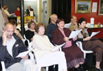 L'exposition présentait les trois étapes principales de la vie d'Oscar Huguenin: La Sagne, son enfance et son premier métier, horloger; Bôle et son deuxième métier, instituteur; Boudry enfin et la célébrité en tant qu'écrivain, dessinateur, illustrateur. L'auditoire ne se lasse pas d'entendre parler d'Oscar Huguenin! |